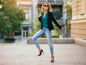 - * fitted jeans or trousers